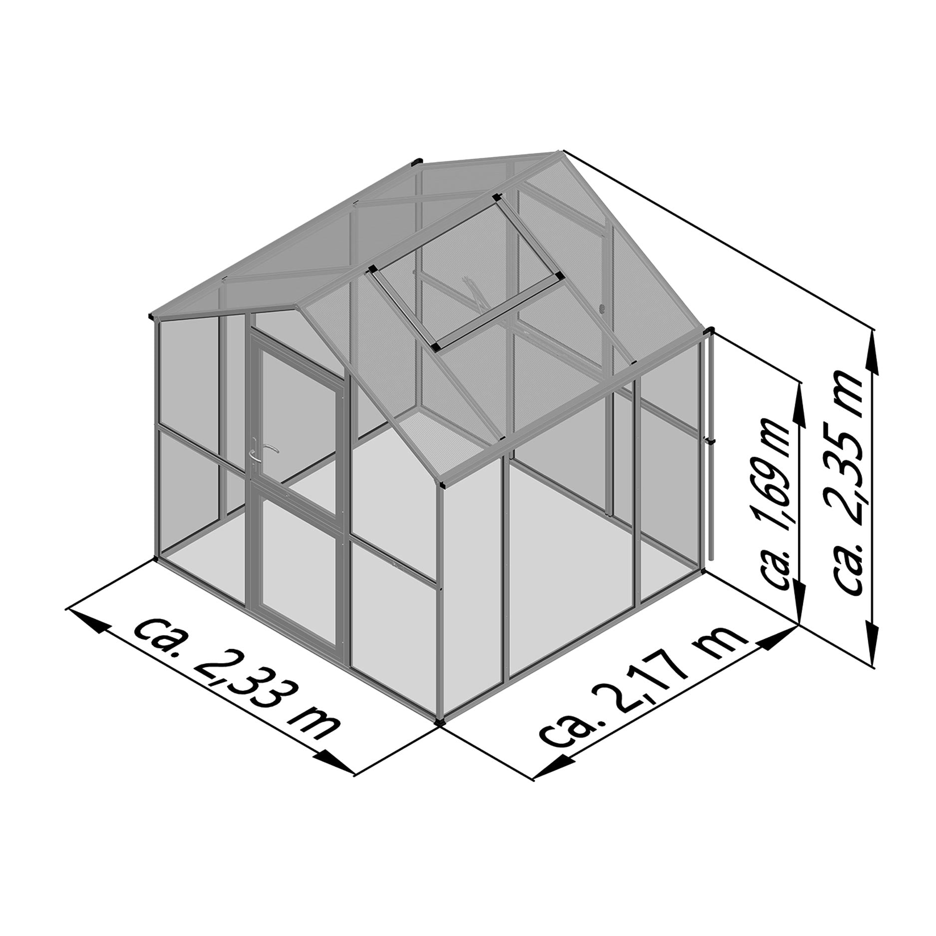 De beglazing bestaat uit 4mm veiligheidsglas in de zijwanden en 10mm kanaalplaten in het dak. Deze combinatie biedt het beste van twee werelden: helder zicht en hoge isolatie. De aluminiumconstructie is onderhoudsarm, roestvrij en bestand tegen weer en wind. Een groot dakraam met automatische opener, achterraam met handbediening en geïntegreerde regengoten zorgen voor optimale ventilatie en waterafvoer.