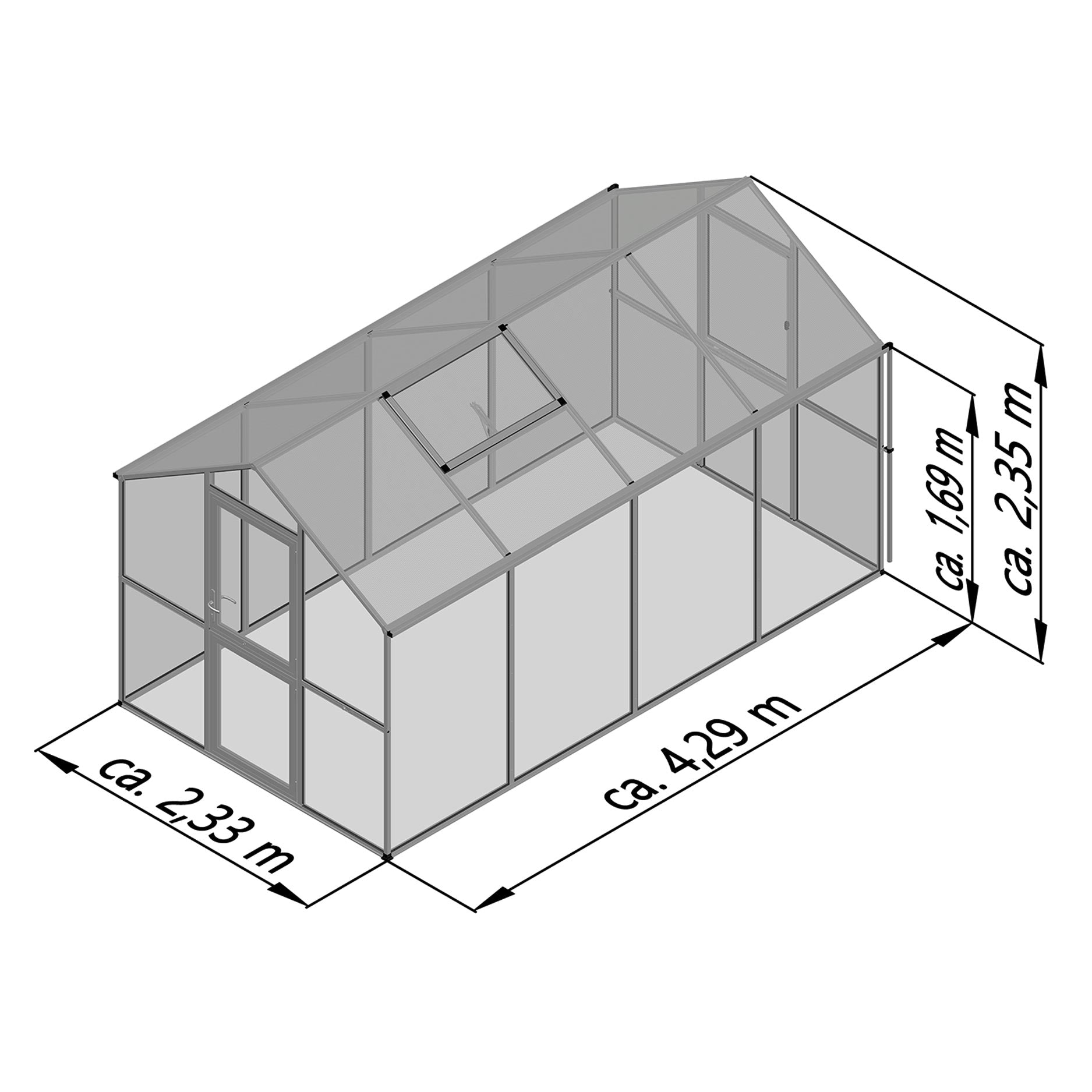 De KGT Aptasia IV is het grootste model binnen de serie en combineert modern design met technische topkwaliteit. Met 10m² vloeroppervlak en een hoge zijwand biedt deze kas een ruim, licht en comfortabel binnenklimaat. Perfect voor ervaren tuinierders die hun kas willen gebruiken voor jaarrond teelt of als groene leefruimte.
