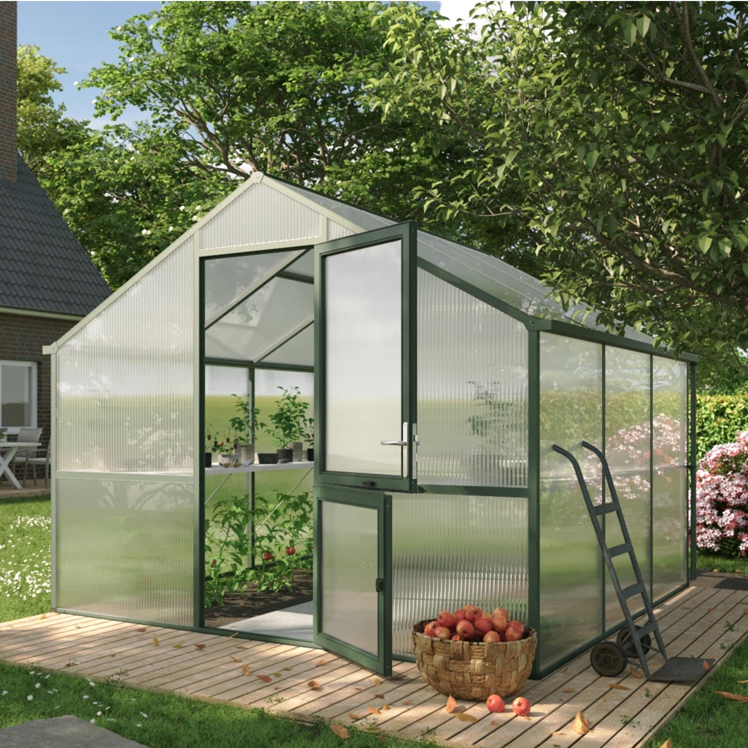 De KGT Nelke III is een hoogwaardige tuinkas voor de tuinierder die het hele jaar door wil kweken in een stabiel en goed geïsoleerd klimaat. Met ruim 10m² vloeroppervlak biedt dit model veel ruimte voor diverse teelten, overwintering van planten of het opkweken van zaailingen. De rechte wanden en royale nokhoogte zorgen voor een comfortabel werkklimaat en optimale benutting van de ruimte.