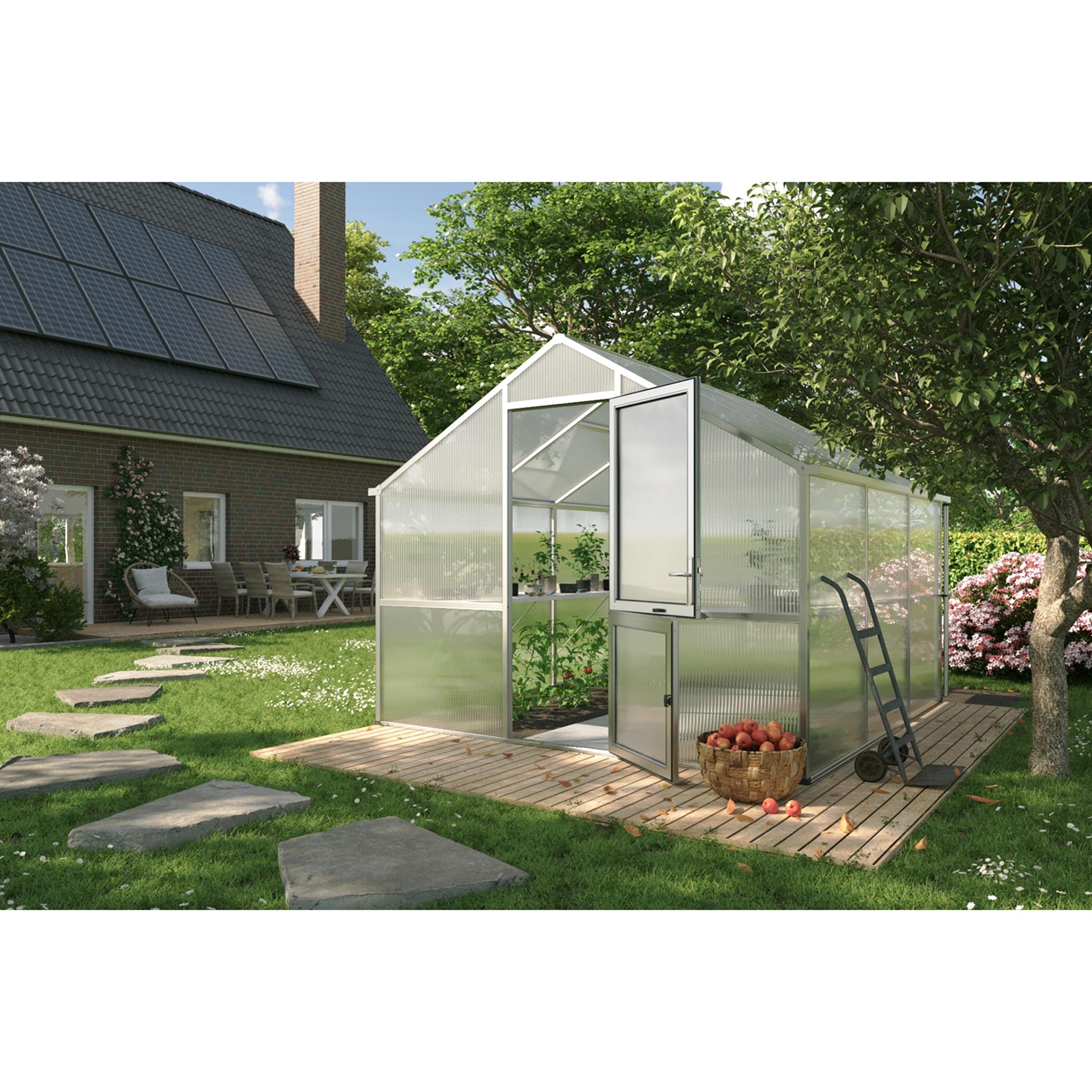 De constructie bestaat uit een sterke aluminium basis met 16mm kanaalplaten die uitzonderlijk goed isoleren en het licht gelijkmatig verspreiden. Dit beperkt temperatuurschommelingen en voorkomt verbranding van gewassen. De Nelke III is uitgerust met een brede draaideur, een automatisch dakraam en een handmatig achterraam voor natuurlijke ventilatie. Geïntegreerde regengoten voeren water efficiënt af of kunnen worden gekoppeld aan een opvangsysteem. Met het optionele funderingsframe staat de kas stabiel en waterpas, ook bij harde wind.