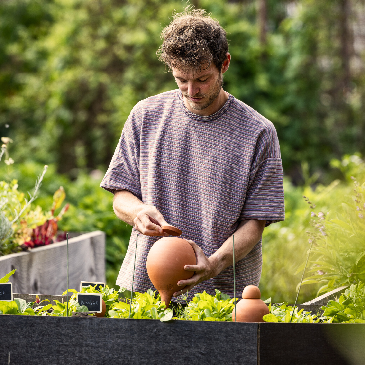 Maak kennis met de Olla Nature: een duurzame en efficiënte manier om je tuin te verzorgen, zonder gedoe en zonder verspilling van water! De waterbesparing is tot wel 70% minder waterverbruik. De Olla is gemaakt van natuurlijke klei, perfect afgestemd op een biologische/ecologische tuin. Dankzij de poriën in de klei komt water precies daar waar het nodig is: bij de wortels van je planten. Door de gelijkmatige bewatering krijgen je planten sterkere wortels en een betere groei. Geschikt voor zowel bloemen, groenten als kamerplanten, zowel in de tuin als in grote potten.