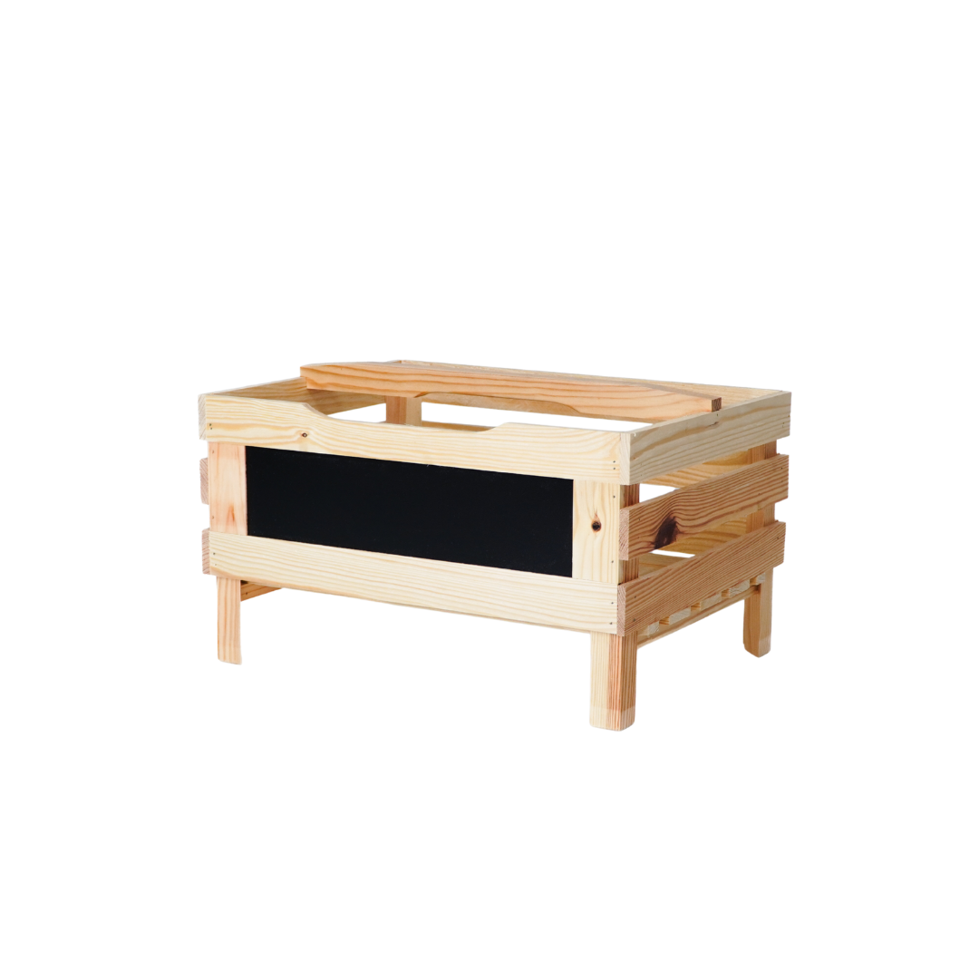 Deze stevige houten voorraadkrat van massief grenenhout is niet alleen functioneel, maar ook een sfeervolle toevoeging aan je keuken, schuur of voorraadkast. Dankzij het geïntegreerde krijtbordje vooraan label je in een handomdraai wat erin zit – van aardappels tot uien of winterpenen. De natuurlijke houtkleur en robuuste afwerking geven de krat een ambachtelijke uitstraling die perfect past in zowel landelijke als moderne interieurs.