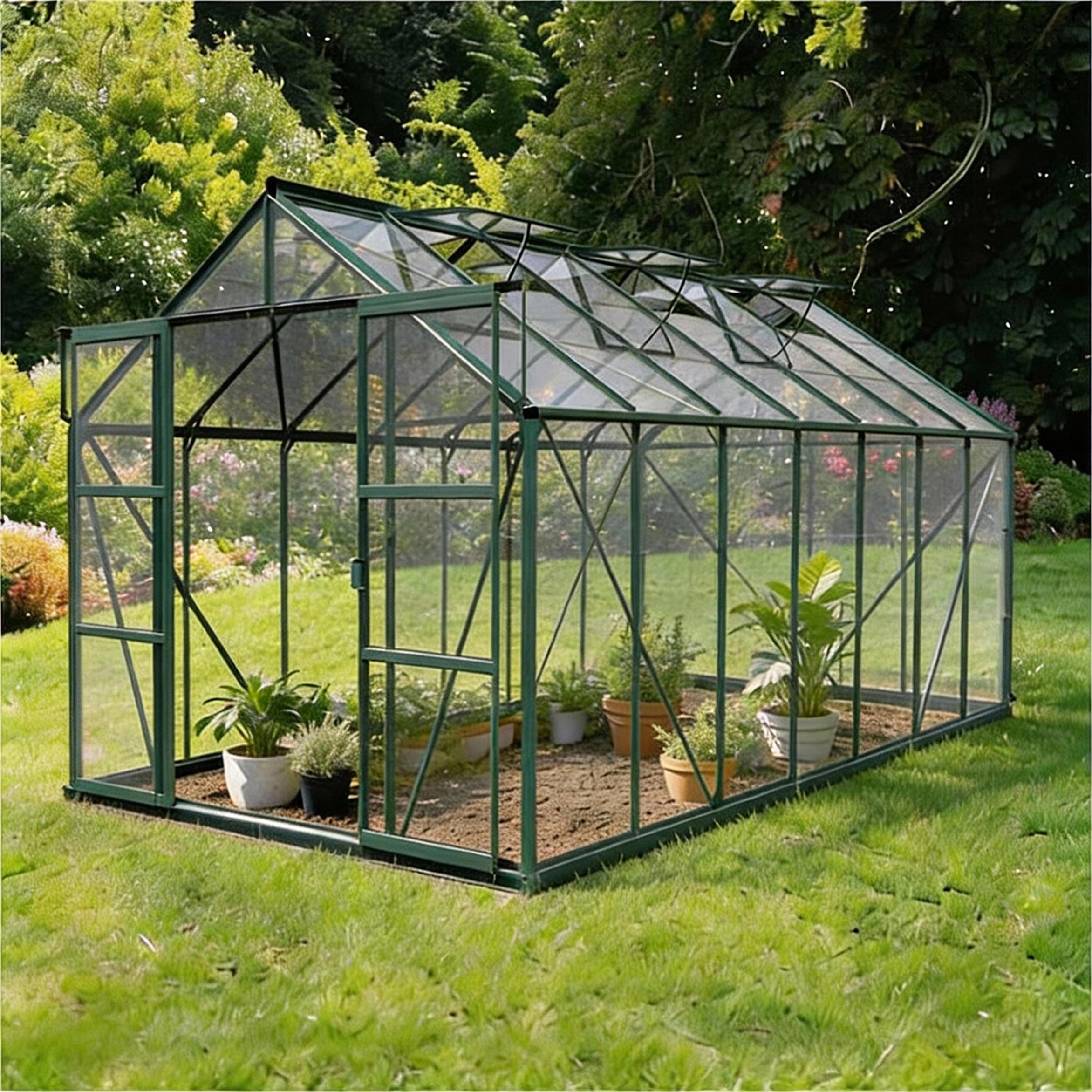 🟩 Robuuste kas met zes dakvensters en dubbele schuifdeur