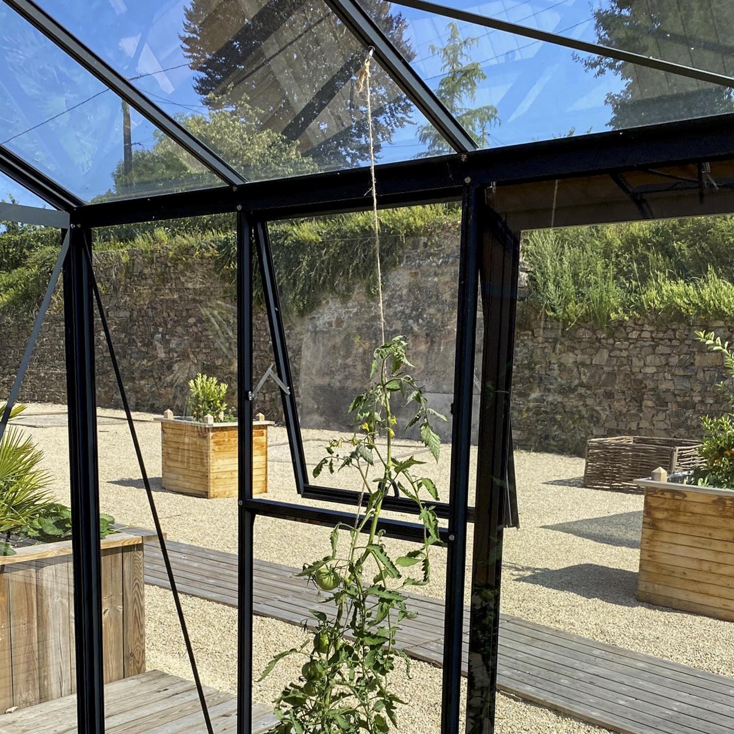 De montage is eenvoudig: plaats de hamerkopschroef in de profielgroef, draai deze vast en bevestig de haak. Vervolgens kun je er onder andere planten, bewateringsslangen, kleine gereedschappen of kweekaccessoires aan ophangen. Zo benut je de ruimte in je kas optimaal en houd je alles netjes en binnen handbereik.