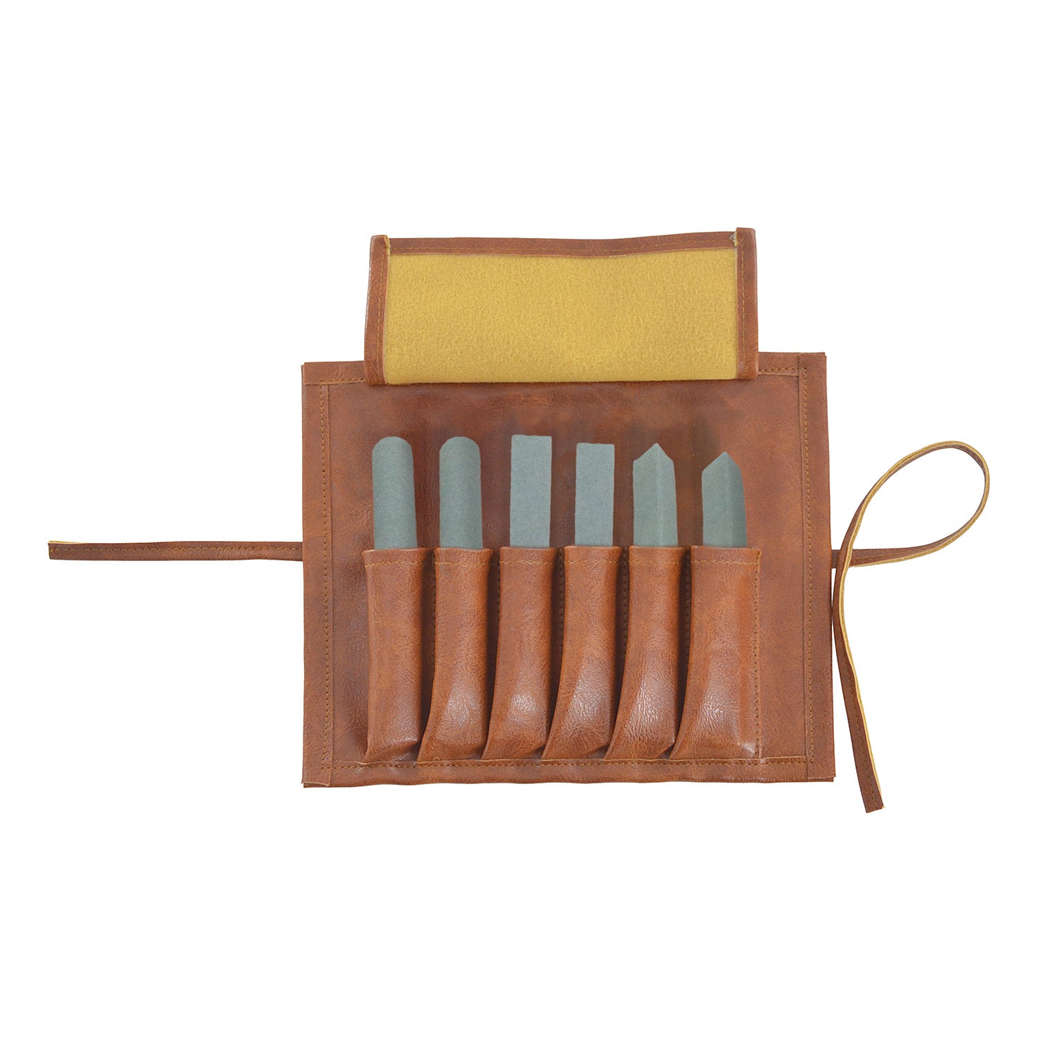 6 slijpvormen in één set, geleverd in stevige (PU-)leren etui