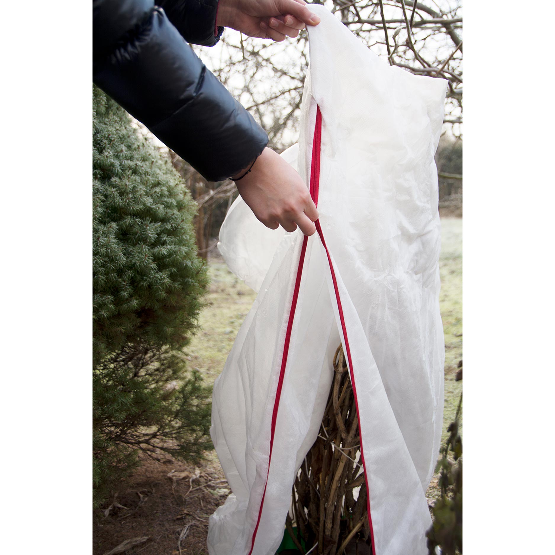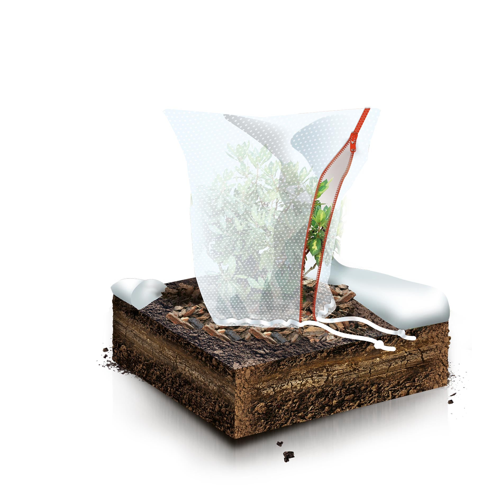 De beschermende hoes met rits is gemaakt van geweven polypropyleen (PP), ontworpen om planten te beschermen tegen kou, wind en sneeuw. Met een gewicht van 50 g/m² biedt het doek voldoende isolatie zonder de plant te verstikken. Het is ideaal voor het afdekken van struiken, jonge bomen en gevoelige planten in de wintermaanden.