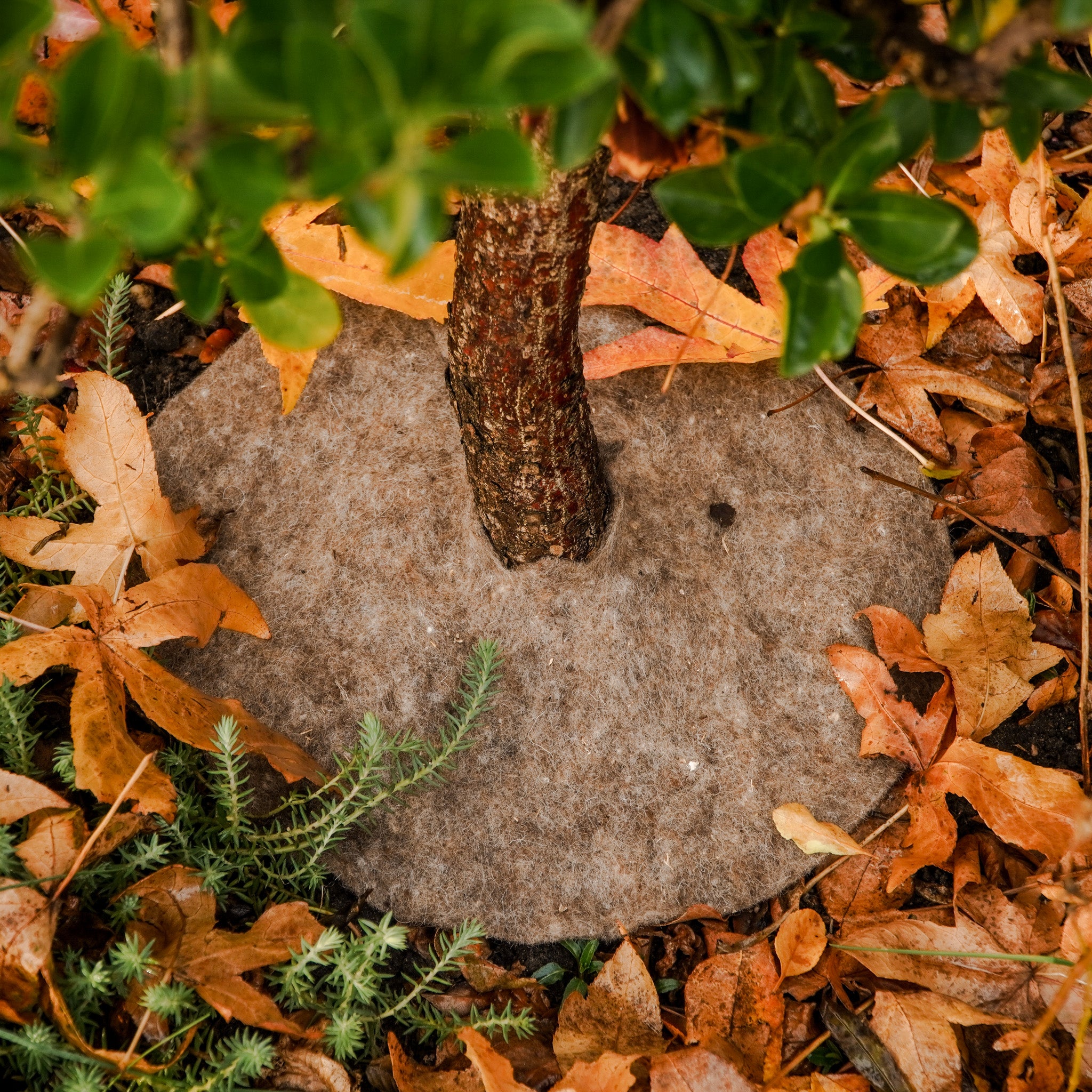 De mulchring is eenvoudig in gebruik: leg hem direct op de grond rond de stam van de boom, waarbij de opening in het midden netjes om de stam valt. De stevige, vezelrijke structuur blijft goed op zijn plek zonder extra bevestiging, ook bij regen of wind. De wol laat water en lucht door, terwijl het de bodem daaronder vochtig en warm houdt – perfect voor jonge of kwetsbare aanplant.