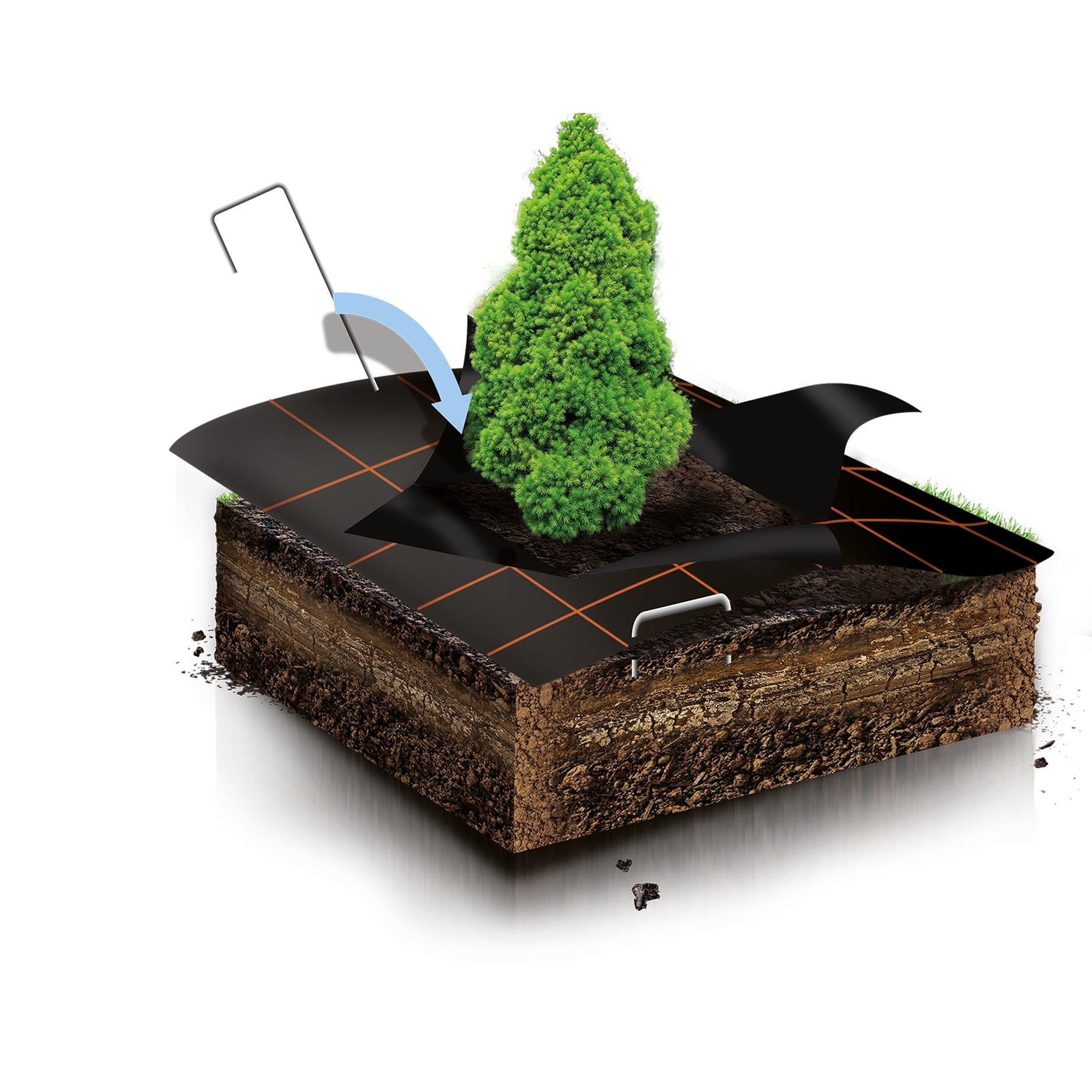 Je rolt het doek uit over een vlakke, onkruidvrije ondergrond en snijdt het op maat rond planten of bedden. Het wordt vastgezet met grondpennen en eventueel afgedekt met mulch of grind. Het doek laat lucht en water door, maar blokkeert licht, waardoor onkruid geen kans krijgt.